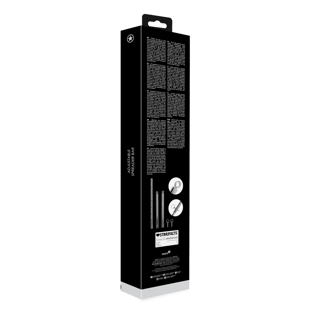 Drążek unieruchamiający Ouch! by Shots został zaprojektowany z myślą o maksymalnej wszechstronności. Wystarczy dostosować jego długość do pożądanej pozycji, zamocować kończyny partnera i cieszyć się pełną kontrolą podczas sesji BDSM.