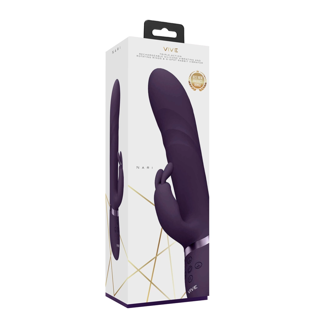 Vive – Wibrujące i obracające się koraliki, królik punktu G – Nari został wyprodukowany z najwyższej jakości jedwabistego silikonu medycznego, który jest hipoalergiczny i bezpieczny dla ciała. W pełni wodoodporny (IPX7), umożliwia zabawę pod prysznicem lub w wannie. Pracuje wyjątkowo cicho (poniżej 60 dB), zapewniając maksymalną dyskrecję podczas użytkowania tego wyjątkowego podwójnego dildo.